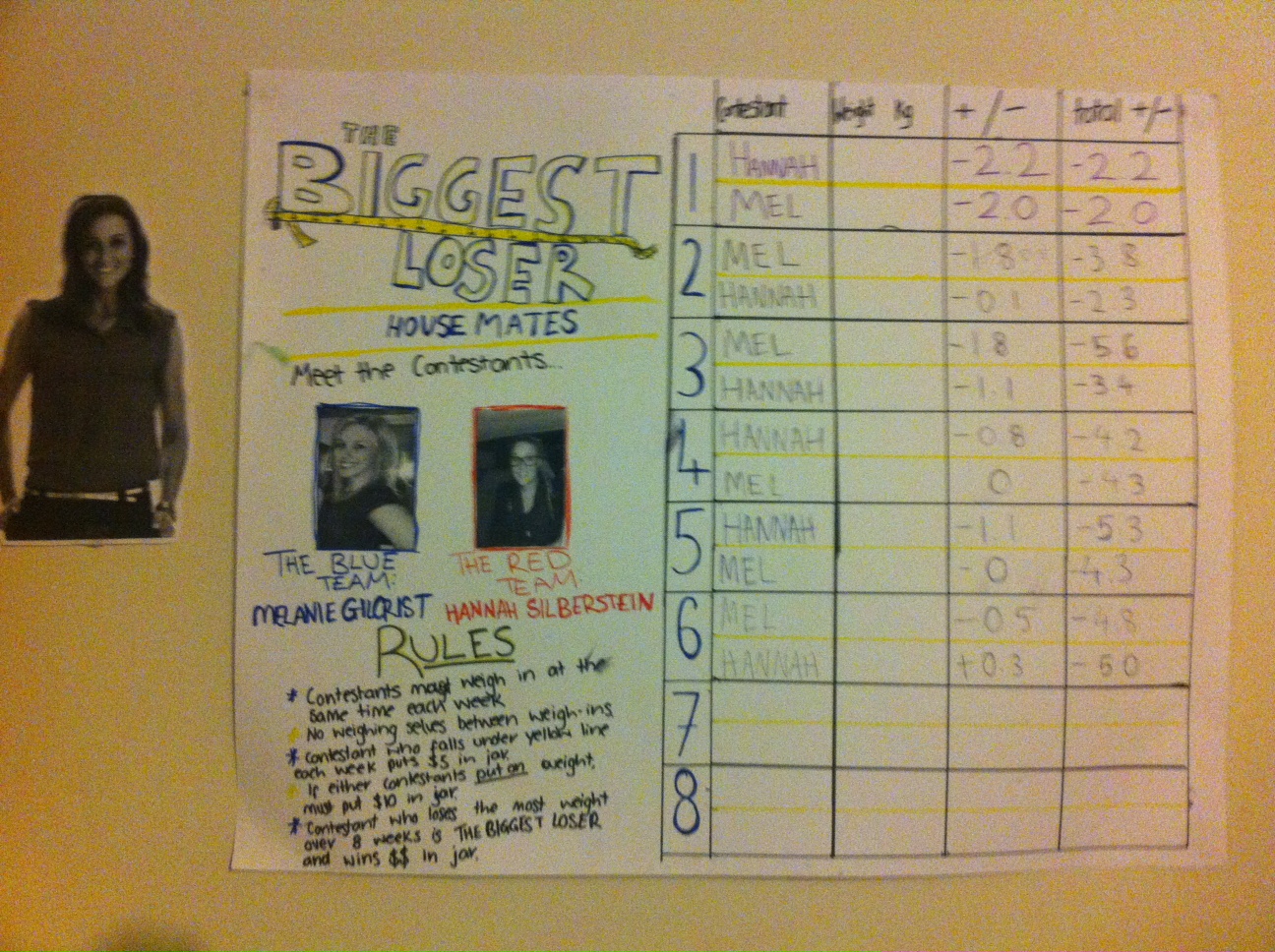 Mel was the biggest loser, losing .5kg.